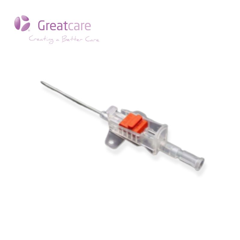 ● Прибирайте катетъра, докато се наблюдава връщане на кръвта (което показва, че върхът на катетъра е влязъл във съдовия лумен). Бавно прокарайте катетъра в кръвоносния съд, докато напълно изтегляте иглата и иглата, оставяйки катетъра частично обитавайки в кръвоносния съд на пациента. В този момент натиснете превключвателя (червено) напред, за да затворите катетъра.